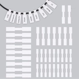 Seeotwo 100 Pieces Self-Adhesive Cable Label Tags Waterproof Labels for Cords Write on Stickers Wire Labels Tear Resistant Tags for Charger Cord Electronics Cable Management (White)