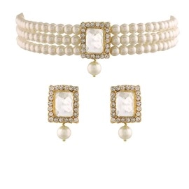 I Jewels Gold Plated Indian Wedding Bollywood Pearl Choker Necklace Set with Earring (ML237W)