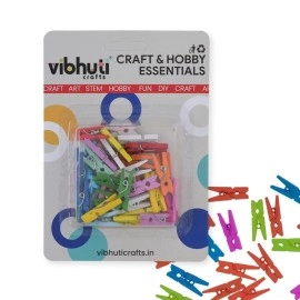 Elevate your crafting experience with VibhutiCrafts Multicolour Wooden Pegs, a vibrant pack of 40 small, 1-inch mini pegs perfect for adding a playful touch to your creative projects. Crafted from durable wood, these high-quality pegs are ideal for various art and craft endeavors, from kids\' crafts and DIY decorations to photo displays. Their comp..