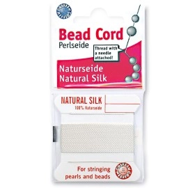 Griffin Silk Bead Cord Perlseide - White Color - Size 0 (0.30mm) - 2 Meters per Card - Stainless Steel Needle Attached - for Knotting Pearls, Gemstones, Crystals and Beads