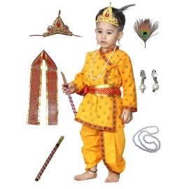 Kaku Fancy Dresses Krishna Costume/Janmashtami/Kanha/Krishnaleela Dress Yellow (2-3 Years)