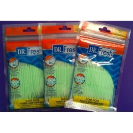 Dr. Fresh 3 pk x (100 ct each) 300 Total Soft Bristle Dental Floss Picks, Interdental Brush, Toothpicks, Flexible Deep Clean..