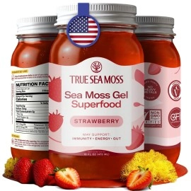 TrueSeaMoss Wildcrafted Irish Sea Moss Gel - Nutritious Organic Raw Seamoss Rich in Minerals, Proteins & Vitamins - Antioxidant Health Supplement, Vegan-Friendly Made in USA (Strawberry, Pack of 1)