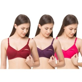 MomToBe Women\'s Cotton Multicolor Full Cup Non Padded Feeding Bra/Nursing Bra/Maternity Bra Combo - Pack of 3 Feed in Comfort with this MomToBe Feeding Bra/Nursing Bra, MomToBe clothes are crafted from finest pregnancy friendly fabric to ensure you look and feel the best all the time, Front Buckles allow you to use this as feeding bra/nursing bra ..