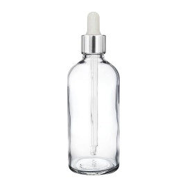 nsb herbals 100 ML Clear/Transparent Round Empty Glass Bottle/Glass Dropper/Silver Colour Ring/Silicon White Teat, Refillable, For Essential Oils, Perfumes (Pack Of 1)