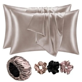 Candibella Women\'s Satin Silk Bonnet for Hair with 3 Premium Scrunchies, Adjustable Silk Hair Cap for Sleeping, Satin Bonnet for Curly Hair with Ribbon Tie Band, Satin Hair Wrap (Rose Taupe)