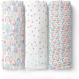 haus & kinder 100% Cotton Soft Muslin Swaddle Wrap for Newborn Baby - Pack of 3 (100 x 100 cm, Pink, Grey, Turquoise) (Rainbow)