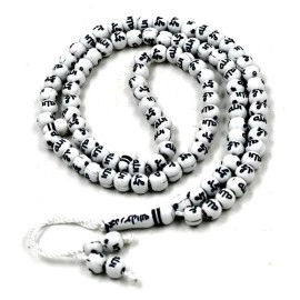 Apnisanskriti White Tulsi Beads Mala in Designer Caps (63 beads, 3mm each, Lab Certified) - White Tulsi - pack of 1 (Silver)