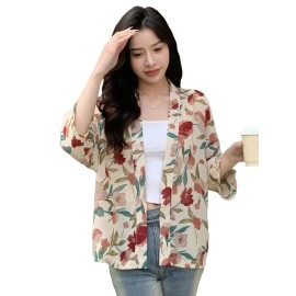 TOPLOT Women\'s Front Open Floral Printed Shrug Top Regular Fit (Shrug-5148-Apricot-XL)